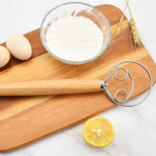 Danish Dough Whisk Stainless Steel Dutch Style Bread Dough Hand Mixer Wooden Handle Kitchen Baking Tools Pastry Dough Blender