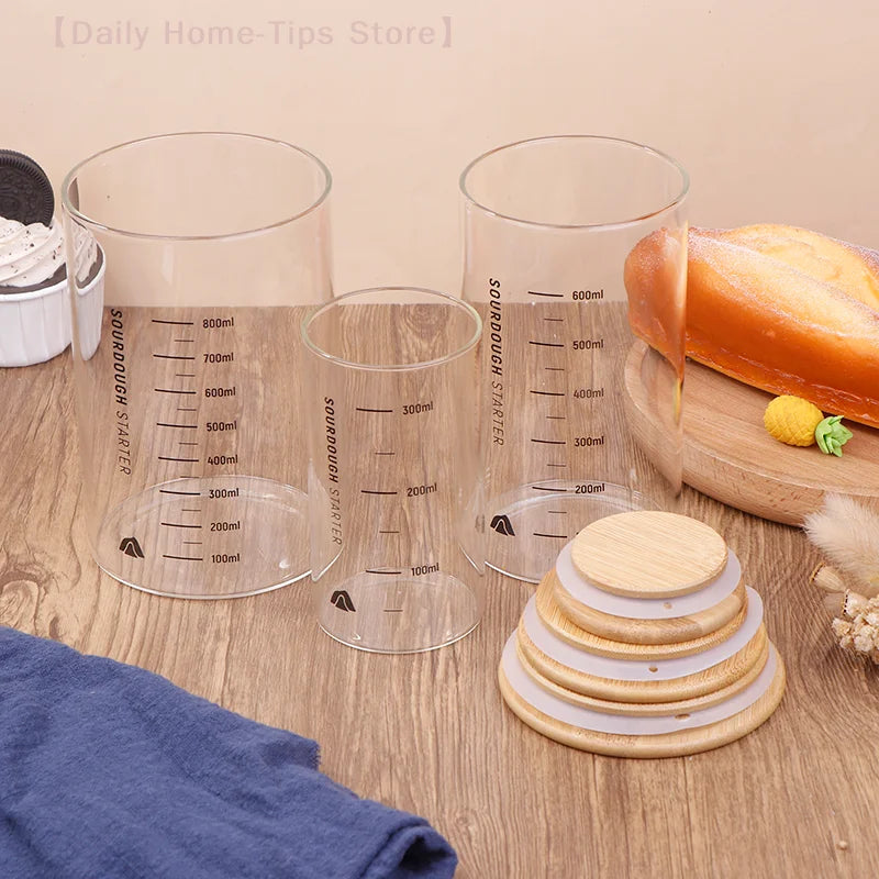 Sourdough Starter Fermentation Jar, Clear Glass, Durable Baking Storage, 300/600/900ml, with Heat Resistance